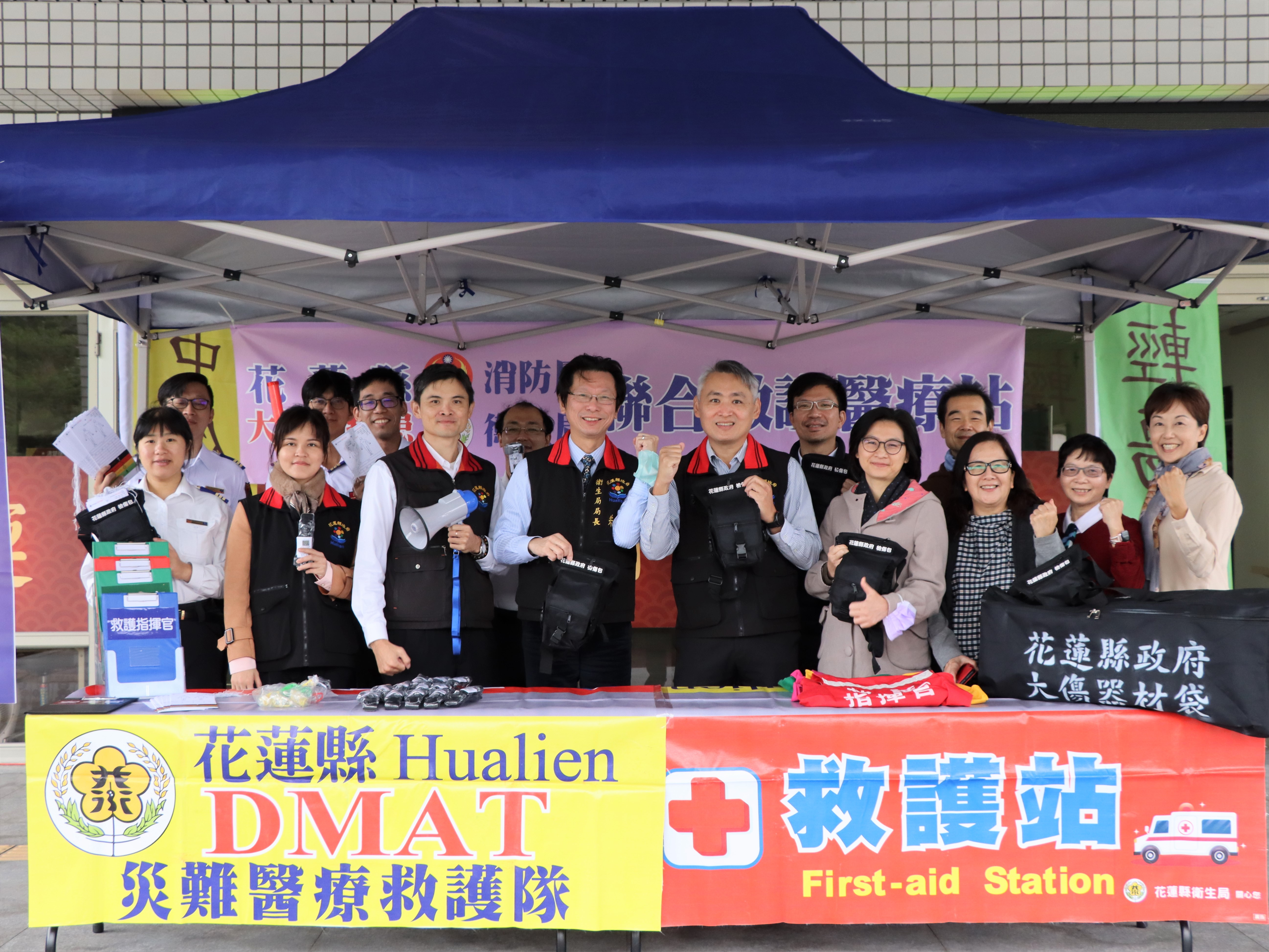 花蓮是著名觀光大縣,特殊景觀與豐富活動每年吸引眾多觀光客前來,但為因應無法預期的大自然、人為災害風險與狹長地形的挑戰,面臨大型災害時能盡速搶救生命,花蓮縣衛生局特別舉辦衛生、消防救護醫療合作暨緊急救護器材移交儀式,移交的設備器材可以讓到院前緊急救護立即展開,包含救護站帳篷、傷情區旗幟、檢傷分組背心、簡易檢傷包等,由衛生局採購後置放於消防局總局與分隊共五處,讓消防救護人員出勤時攜帶,不僅可以讓搶救出的傷患有安全的區域接受救護處置,也能使消防救護員於執行救護工作時有更完整的設備,朱局長並感謝消防人員奮力守護每一條寶貴的生命。